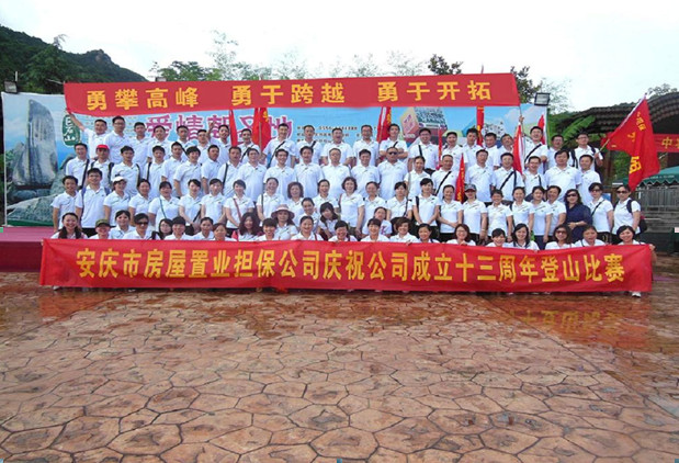 2013年6月23日,安慶市房屋置業(yè)擔(dān)保公司組織舉辦了以“勇攀高峰、勇于跨越、勇于開拓”為主題的巨石山登山比賽活動(dòng),慶祝公司成立十三周年。