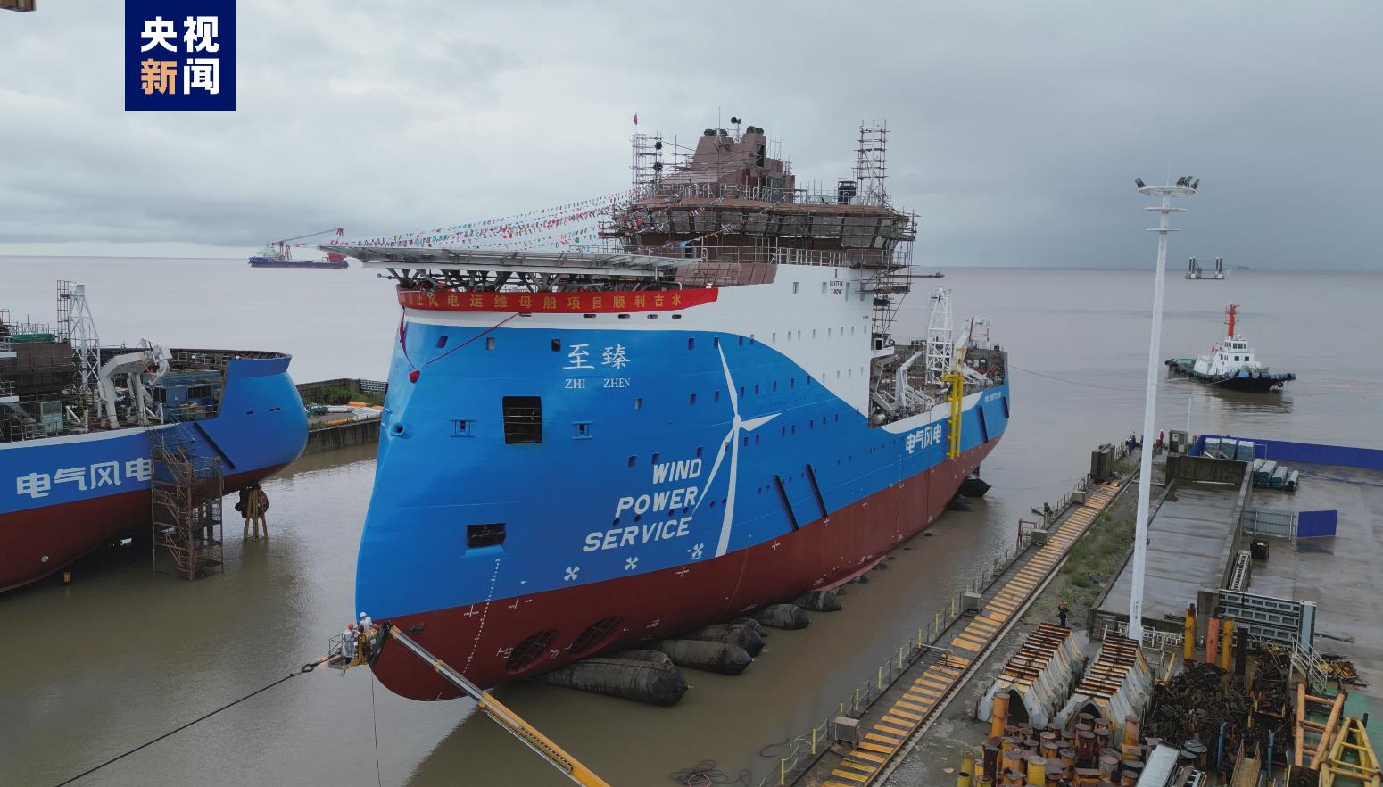 走向深遠(yuǎn)海 亞洲首制海上風(fēng)電運(yùn)維母船下水