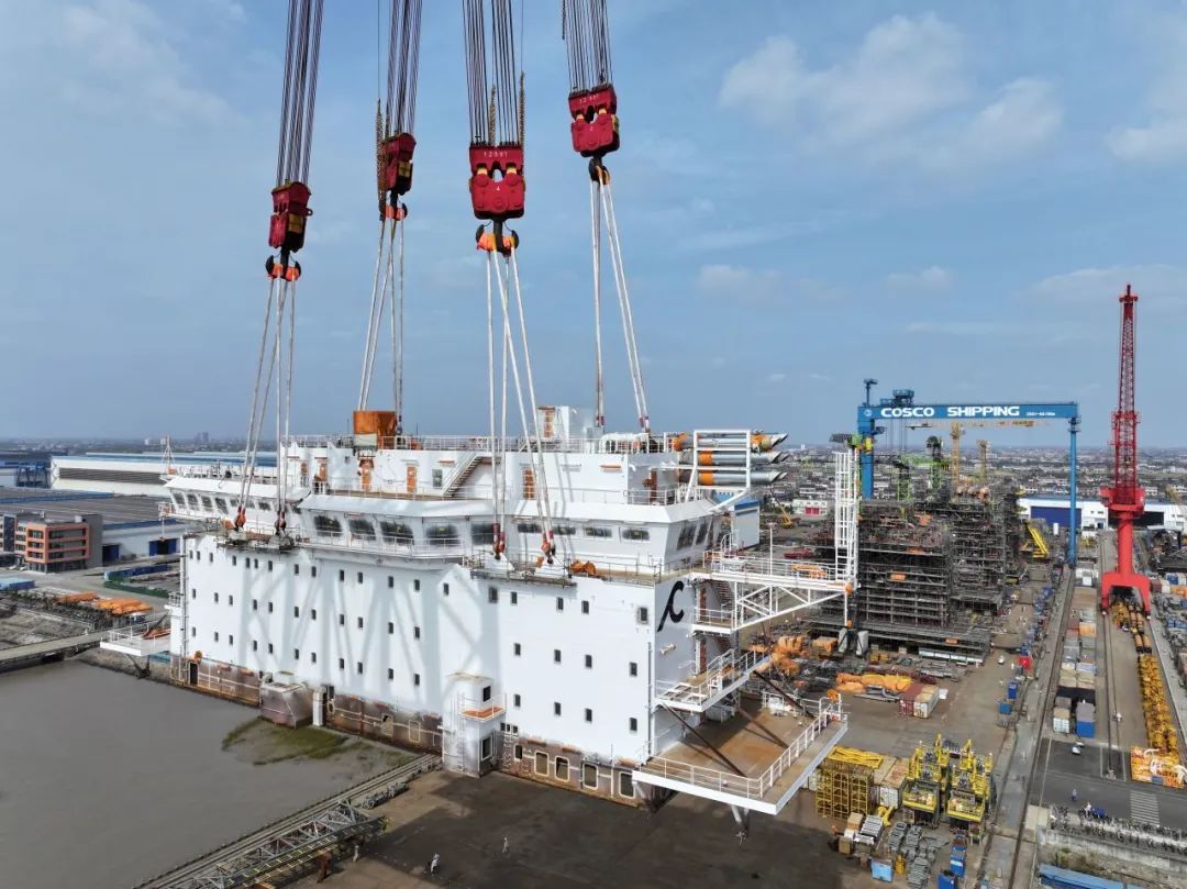 日前,啟東中遠(yuǎn)海運海工N1063項目完成生活區(qū)完整性吊裝重大節(jié)點。從2月中旬至10月底,歷時八個半月,從開始搭載到生活區(qū)完整性交付和整體吊裝。是啟東中遠(yuǎn)海運海工目前為止海工建造項目周期性最短、完整性最高的生活區(qū)項目。